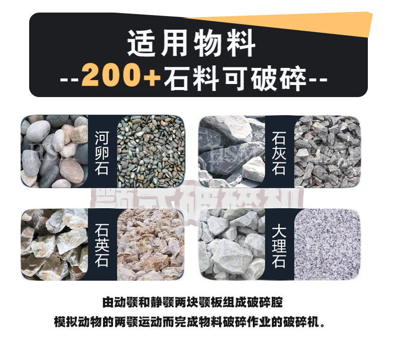 • 適用物料:河卵石、焦炭、煤、陶瓷原料、石英石、石灰石、泥質(zhì)頁巖、白墨、磚塊、爐渣、熟料、長石、焦炭長石、石膏、食鹽